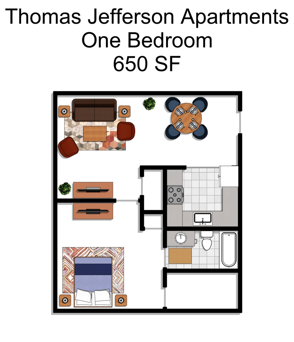 Thomas Jefferson Senior Apartments offers an array of floor plans featuring well appointed kitchens, generous closet and storage space, and relaxing living spaces. Rest easy knowing that your new apartment home is constructed with quality and designed with comfort in mind.